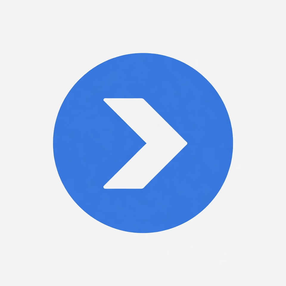 A white right-pointing arrow is centered inside a solid blue circle. The arrow has a bold, geometric design with sharp edges. The icon features a clean, isolated background.