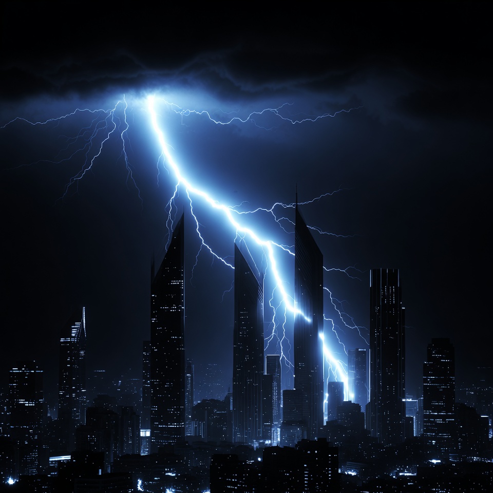 Lightning Striking City Skyline