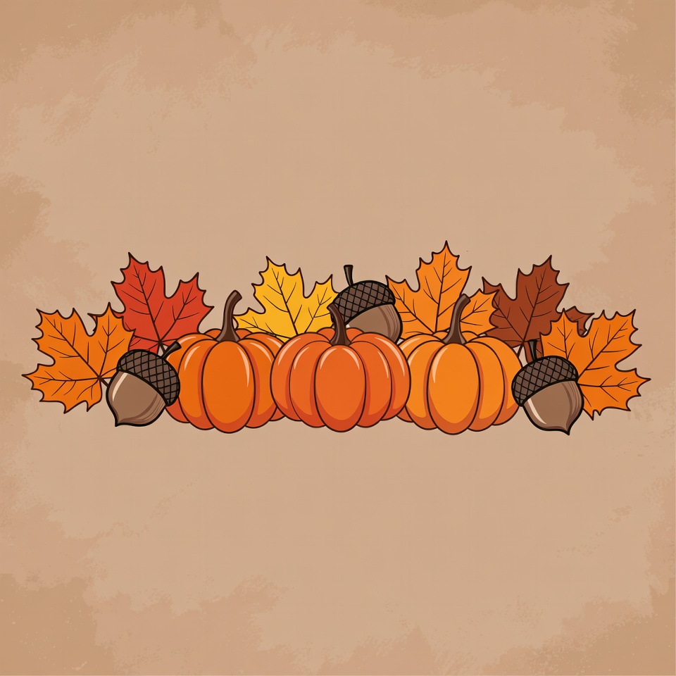 acorns, autumn, beige background, brown acorns, clipart, fall decor, fall leaves, foliage, gourds, graphic design, harvest, holiday, illustration, isolated background, maple leaves, nuts, orange pumpkins, red leaves, rustic, seasonal, textured paper, thanksgiving, vector art, warm colors, pumpkins