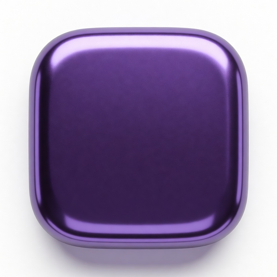 3D render, clipart, geometric shape, glossy, isolated background, metallic, modern design, object, purple color, reflective surface, shiny, square shape, vibrant purple, white background, purple square