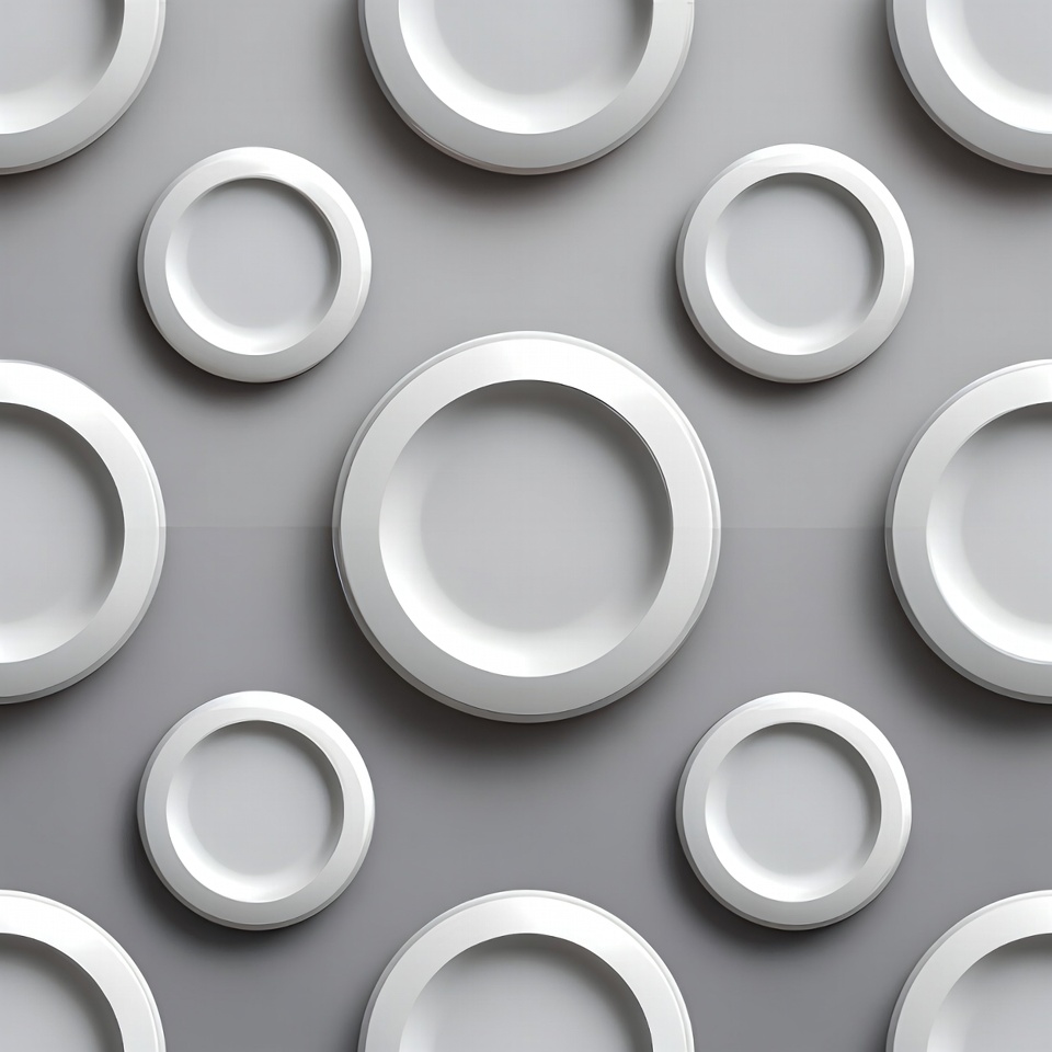 3D render, background pattern, ceramic plates, dinner plates, dishware, glossy plates, gray background, isolated background, kitchenware, overlapping plates, plate pattern, plates, porcelain plates, round plates, seamless pattern, tableware, texture, white plates