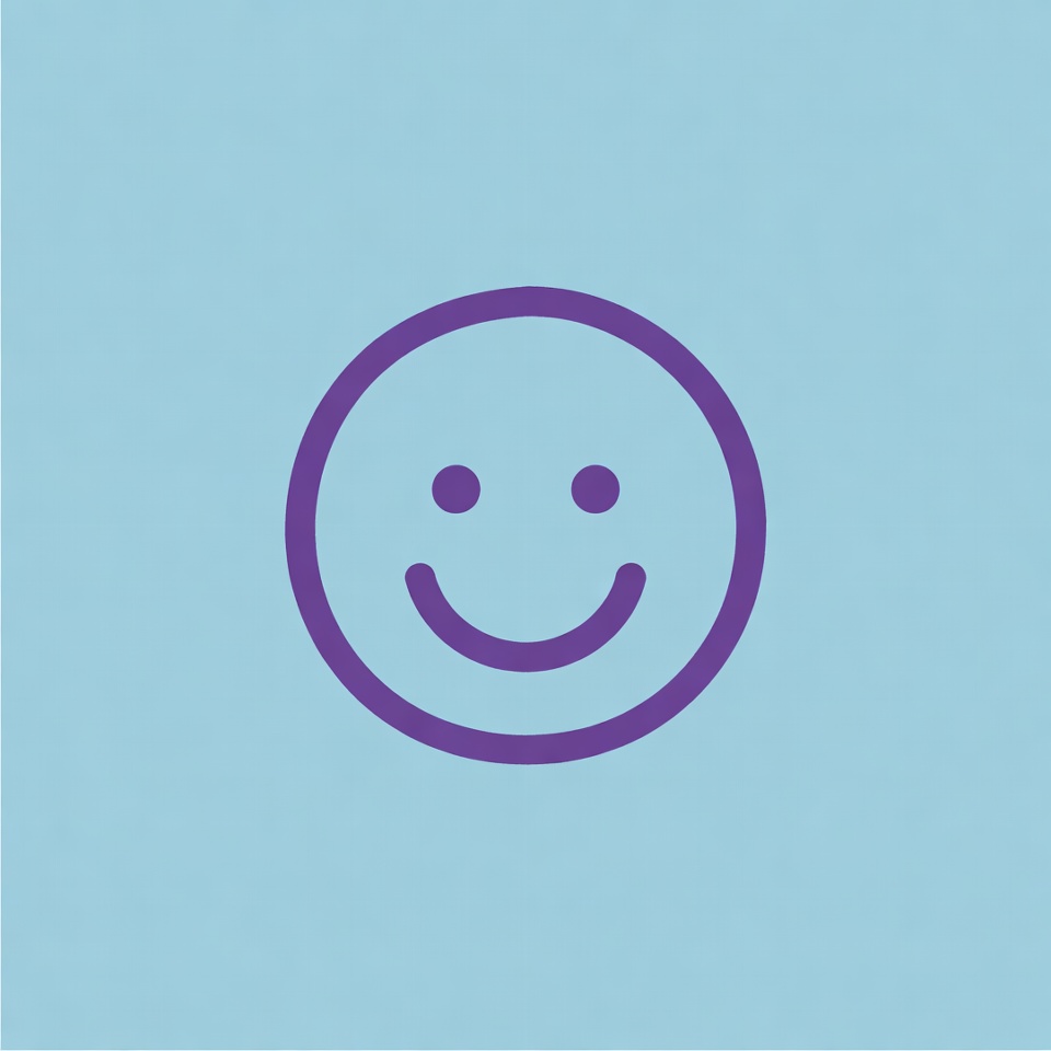 cartoon face, clipart, dot eyes, emoji, face, happy face, icon, illustration, isolated background, light blue background, line art, purple, simple, smiley, smiling mouth, vector, smiley face