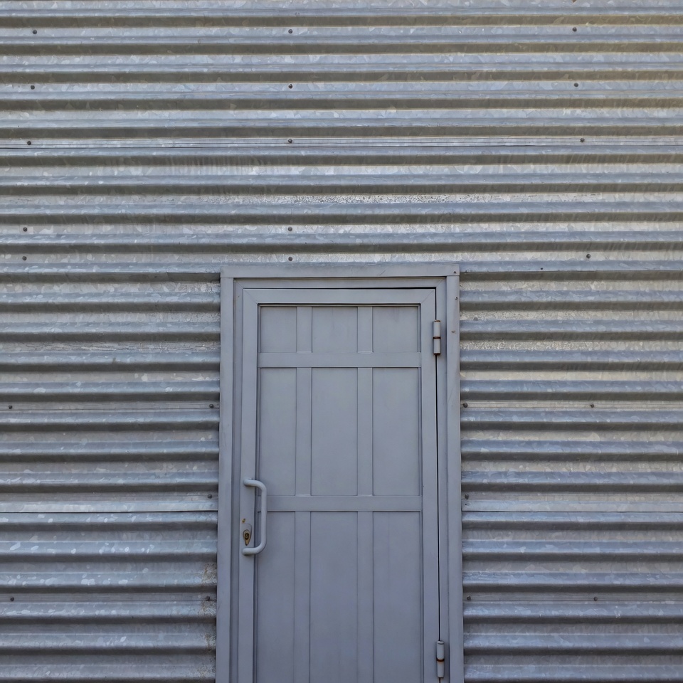 Gray Door on Corrugated Metal Wall