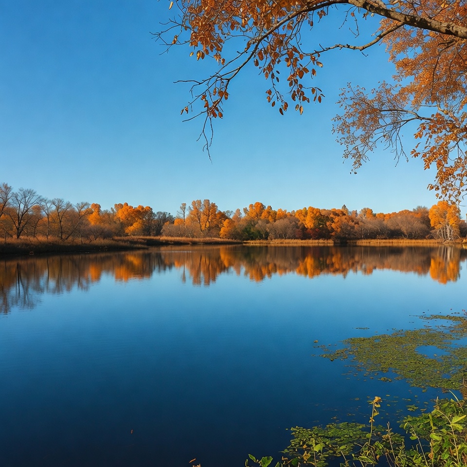 Autumn Trees Reflecting in Blue Lake