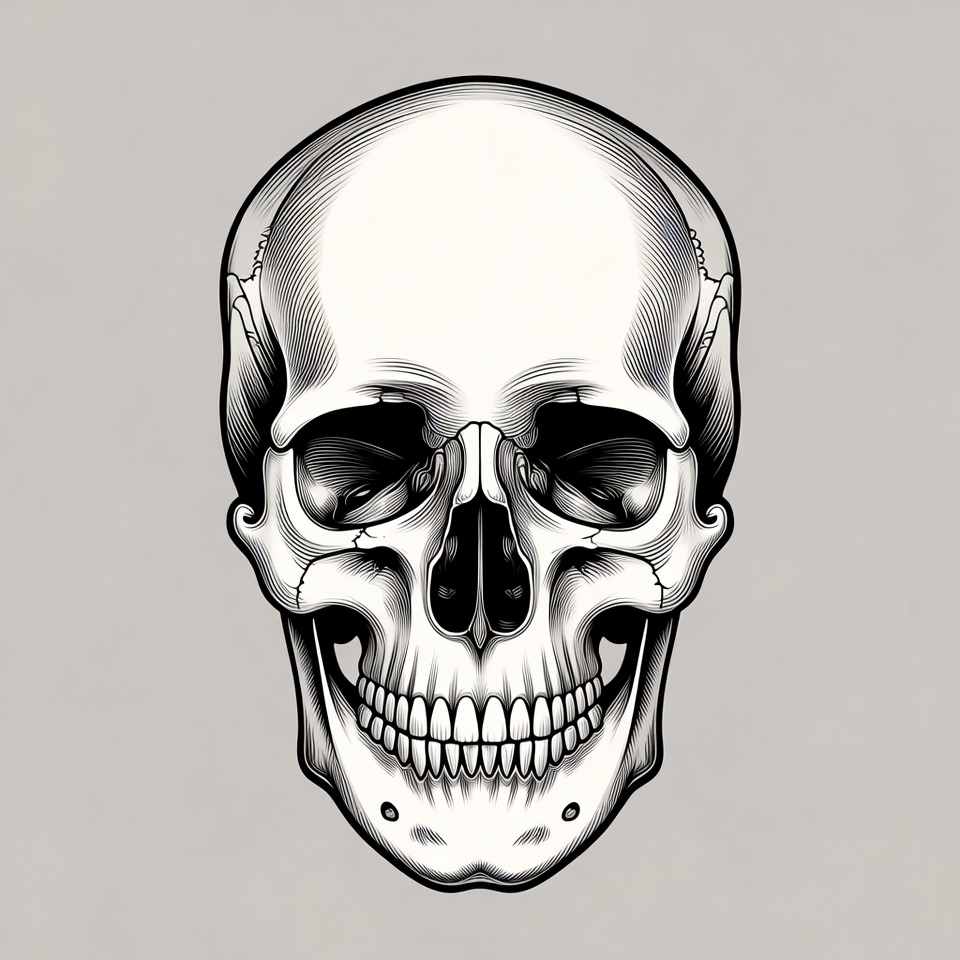 anatomy, black and white, bony face, clipart, death symbol, eye sockets, gothic art, grayscale, human skull, ink drawing, isolated background, line art, skull illustration, tattoo design, teeth, skull