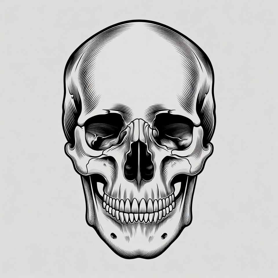 anatomy, black and white, bony face, clipart, death symbol, human skull, ink drawing, isolated background, line art, realistic skull, skeleton, skull head, skull illustration, tattoo design, skull