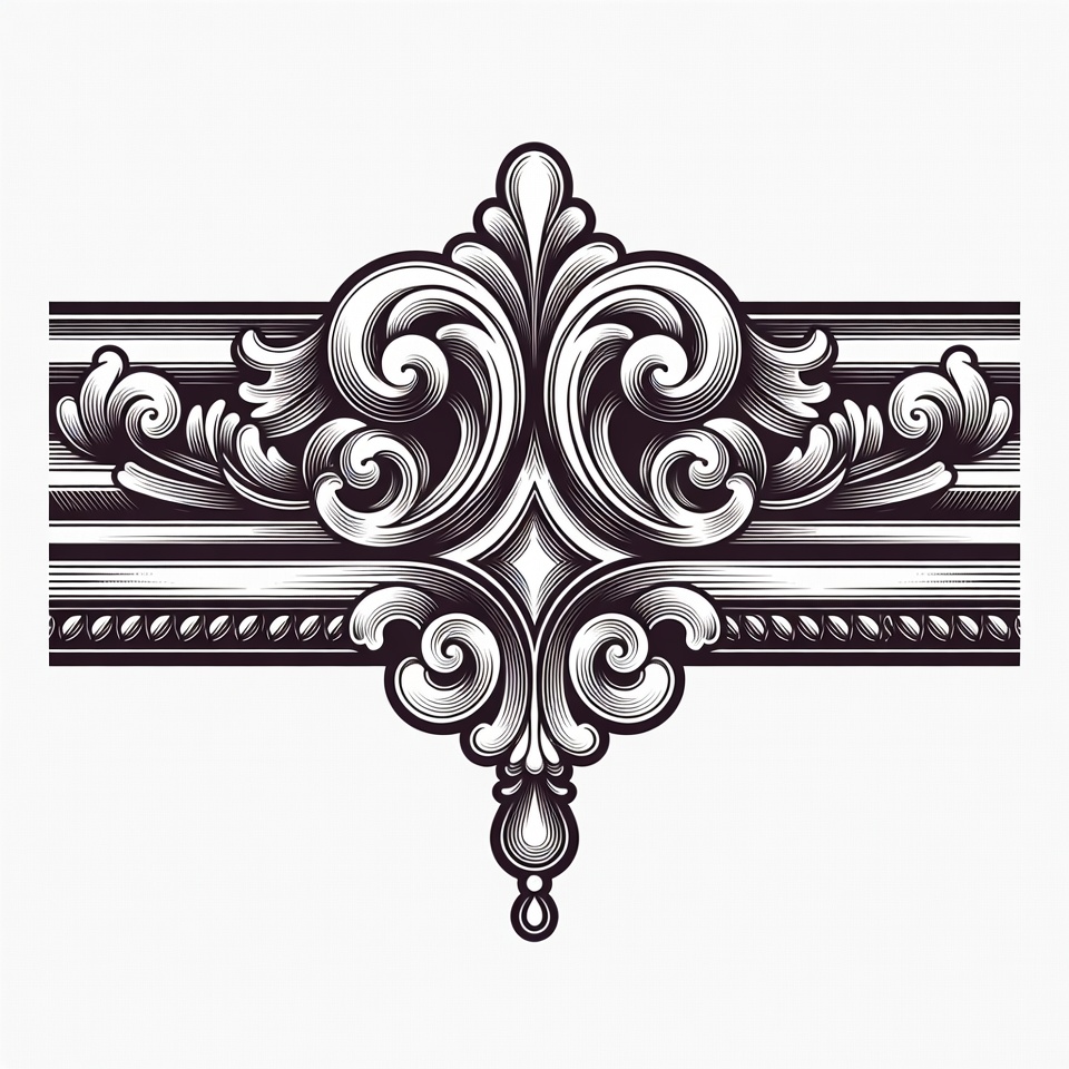 acanthus leaves, baroque style, black and white, clipart, crest, decorative element, emblem, engraving, filigree, floral motif, frame, illustration, intricate pattern, isolated background, line art, rococo, scrollwork, symmetrical design, vector graphic, vintage, ornate border