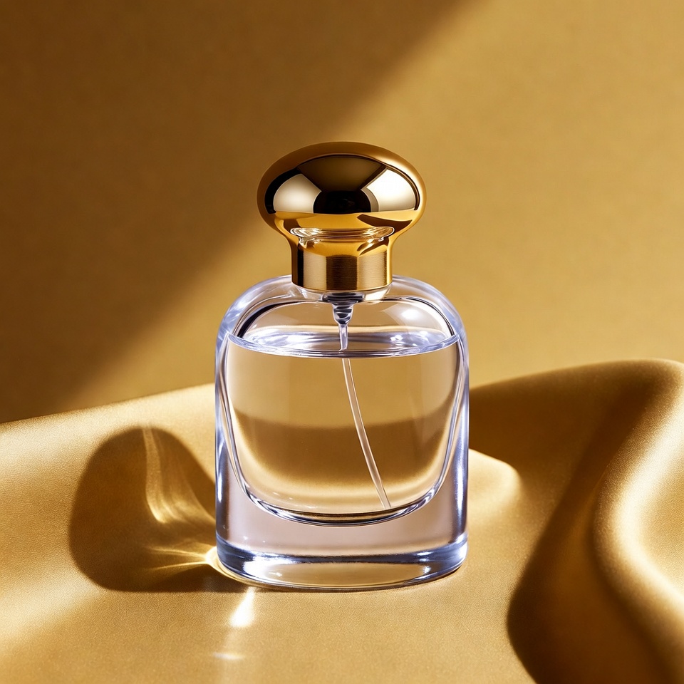 Luxury Perfume Bottle on Gold Fabric