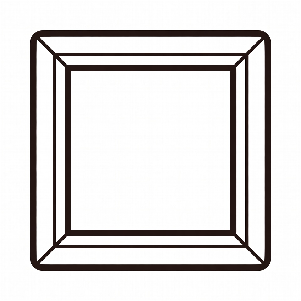 A simple black line drawing of a square frame with multiple layered borders. The design features thick and thin outlines forming a nested square structure. It is isolated on a white background.