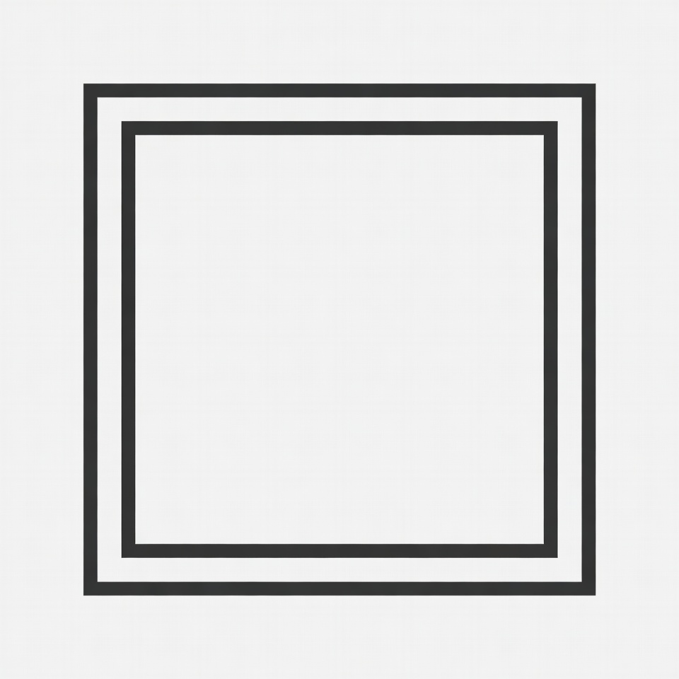 A simple graphic of a large square frame with double black outline borders on a light gray background. The interior of the square is completely empty and white. It appears as a clean, minimalist vector illustration.