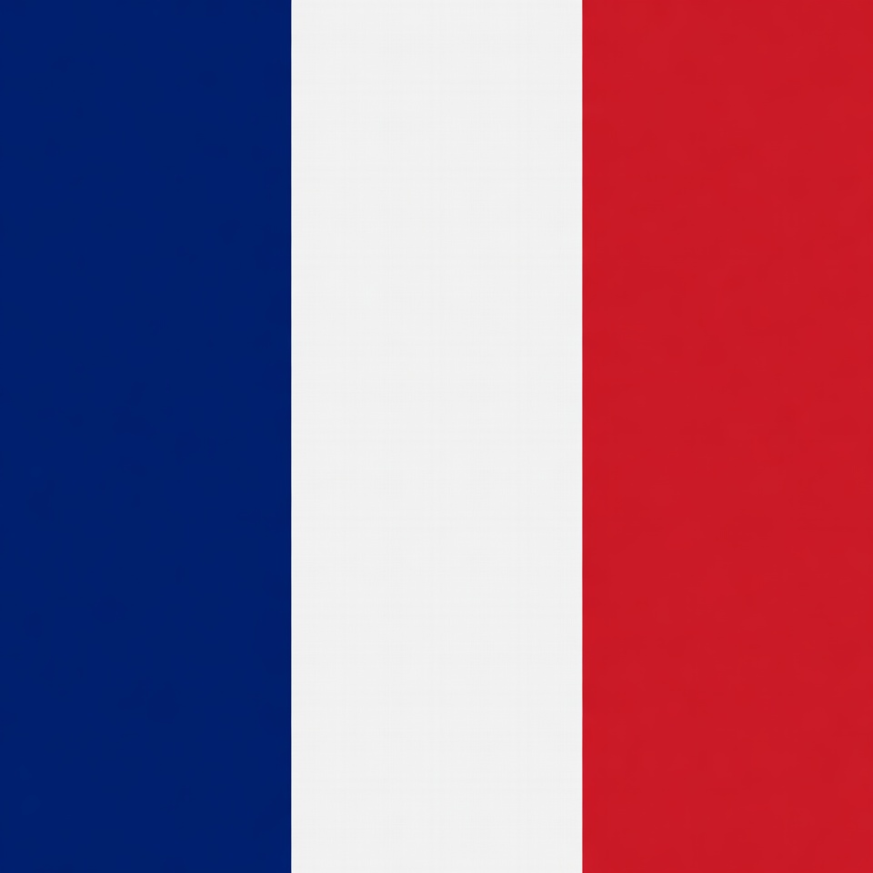 The French national flag features three vertical stripes. The left stripe is navy blue, the center stripe is white, and the right stripe is bright red.