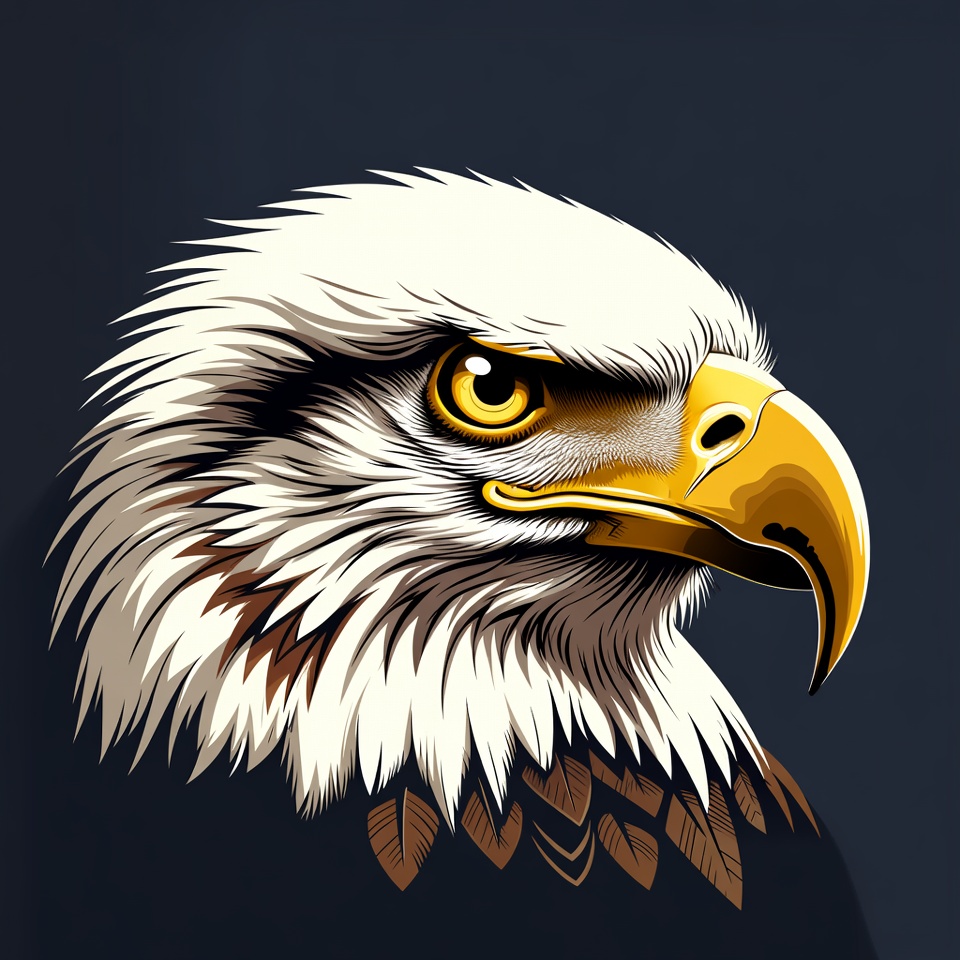animal illustration, bird, clipart, dark background, digital art, eagle closeup, eagle head, eagle illustration, eagle portrait, feathers, graphic design, isolated background, majestic eagle, predatory bird, profile view, raptor, vector art, white feathers, wildlife, yellow beak, yellow eyes, bald eagle