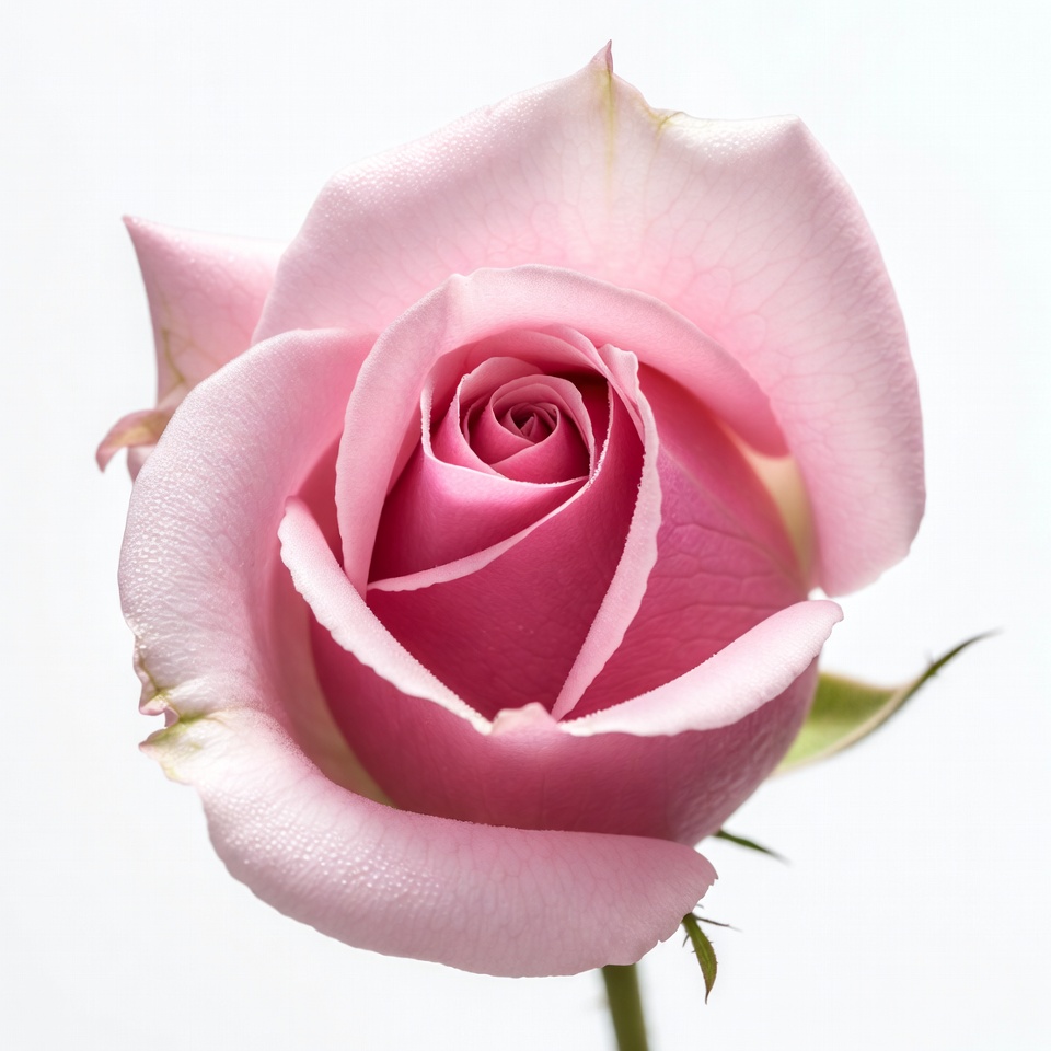 bloom, botany, close-up, floral, flower, flower macro, fresh rose, garden flower, green stem, isolated, nature, petals, pink petals, romantic flower, rose, rose bud, white background, pink rose