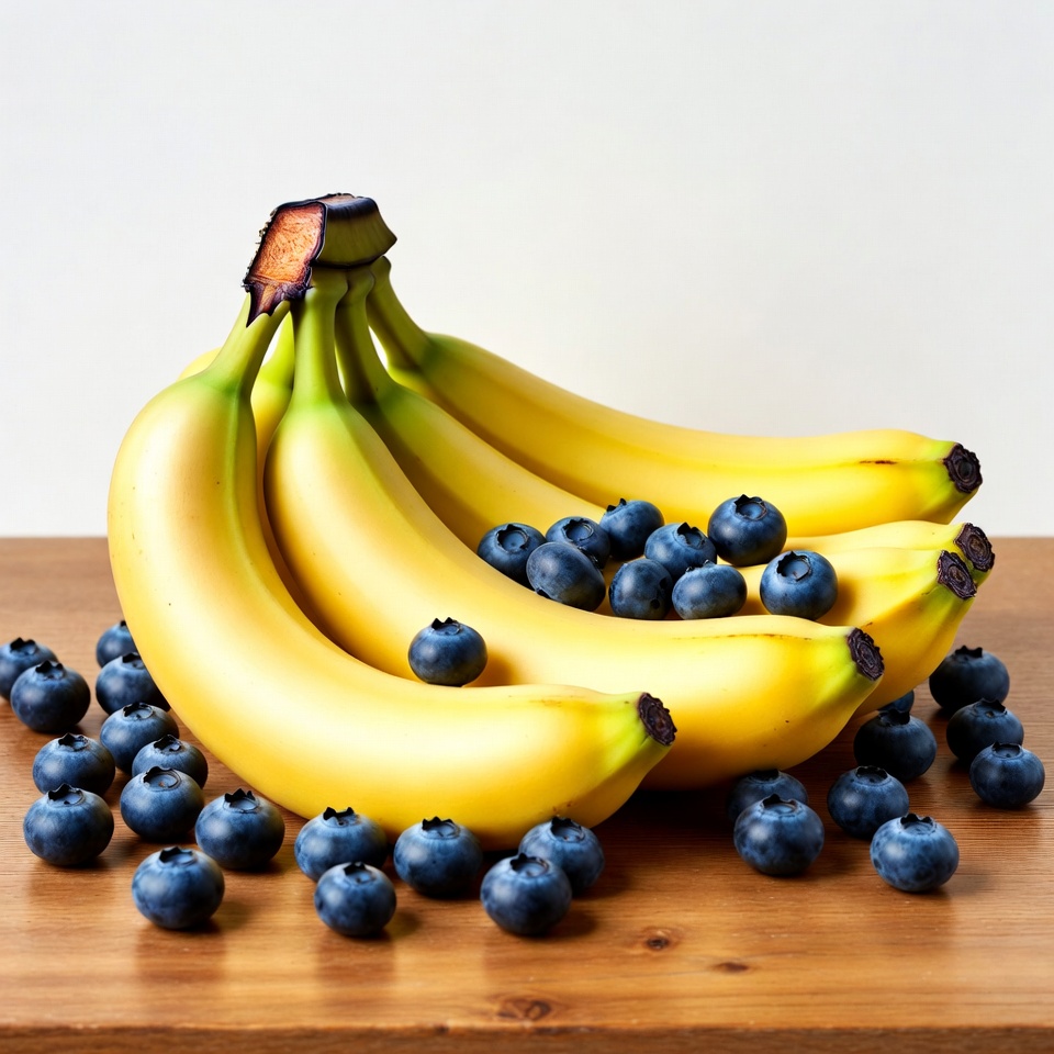 Bananas with Blueberries on Wooden Table