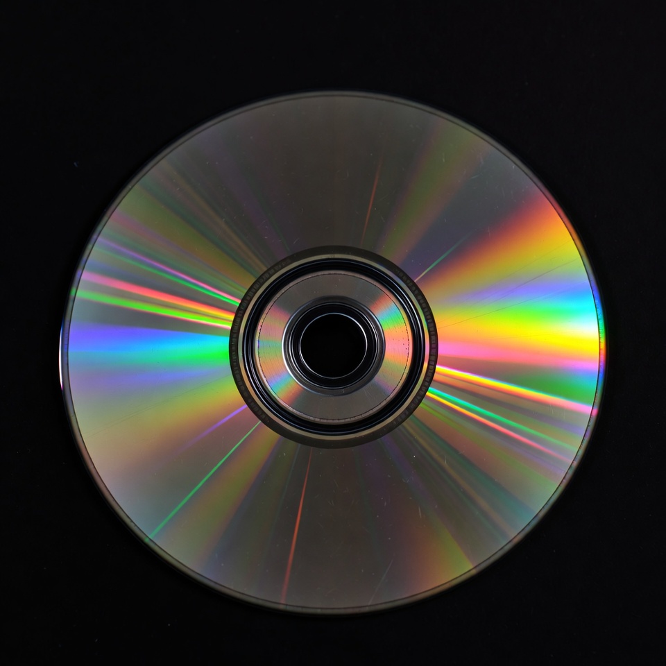 black background, closeup, compact disc, data disc, disc, holographic effect, iridescent, isolated, music CD, optical disc, rainbow colors, reflective CD, round disc, shiny disc, CD