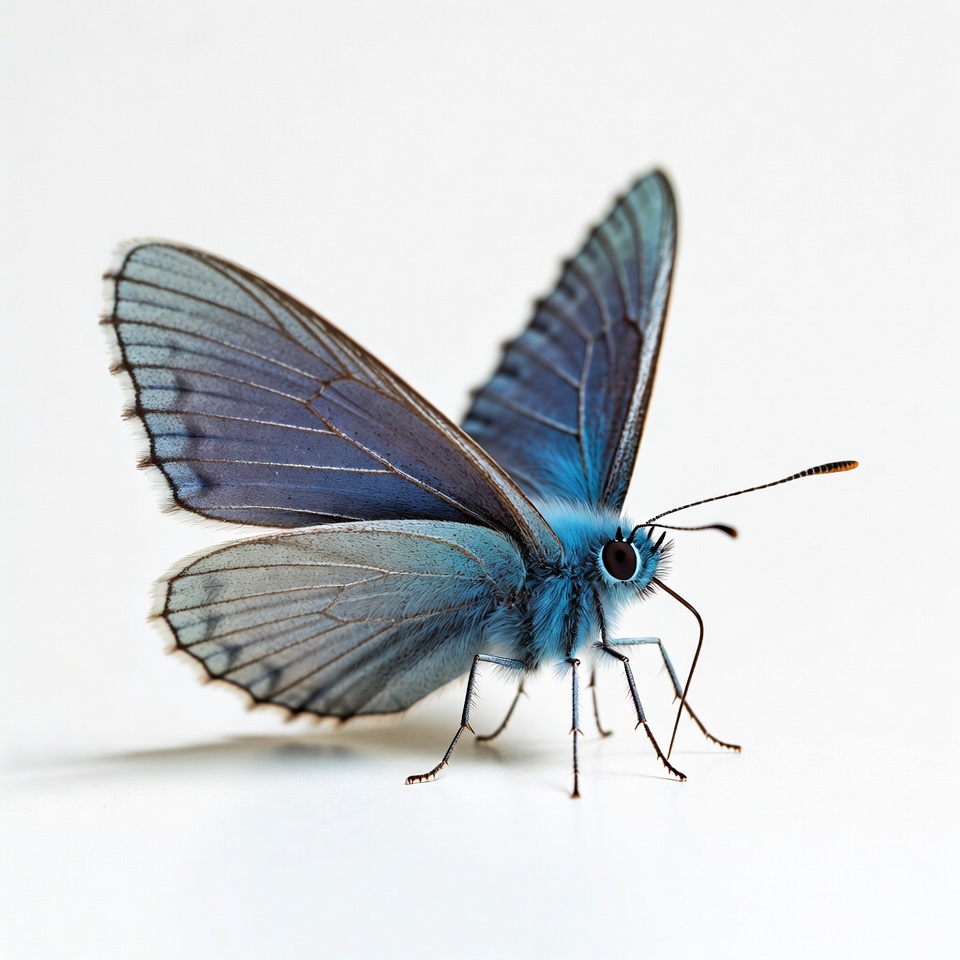 antennae, blue wings, butterfly, closeup, insect, isolated background, legs, lepidoptera, macro, nature, shimmering wings, white background, wildlife, wings, blue butterfly
