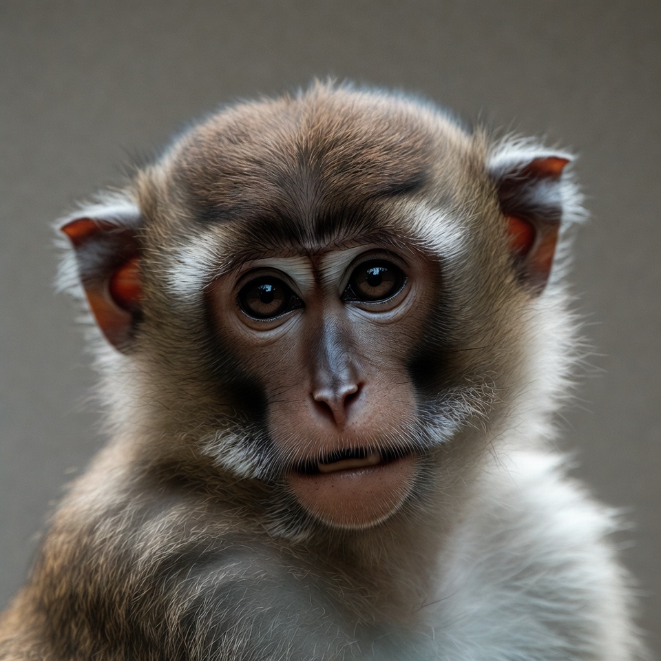 animal, brown fur, close-up, cute monkey, ears, funny face, headshot, isolated background, large eyes, macaque, mammal, muzzle, pig-tailed macaque, portrait, primate, staring, white face, wildlife, monkey