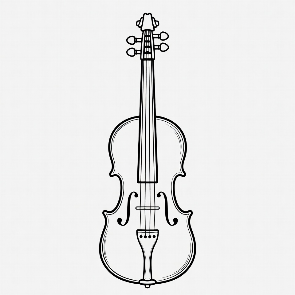 acoustic instrument, black and white, bowless, bridge, classical music, clipart, f-holes, fiddle, illustration, isolated background, line art, musical instrument, outline, scroll, simple drawing, strings, vector, violin