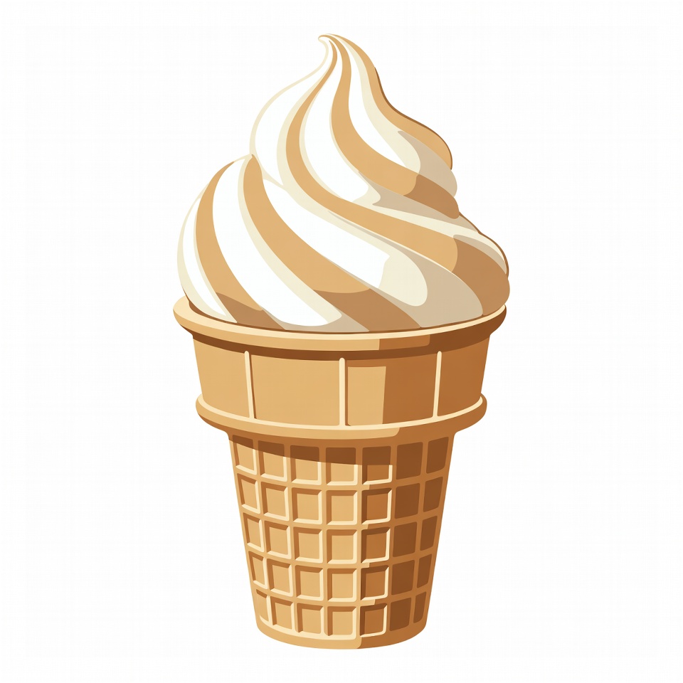 clipart, creamy topping, dessert, food illustration, ice cream cone, isolated background, soft serve, sweet treat, swirl ice cream, vanilla ice cream, vector art, waffle cone, ice cream