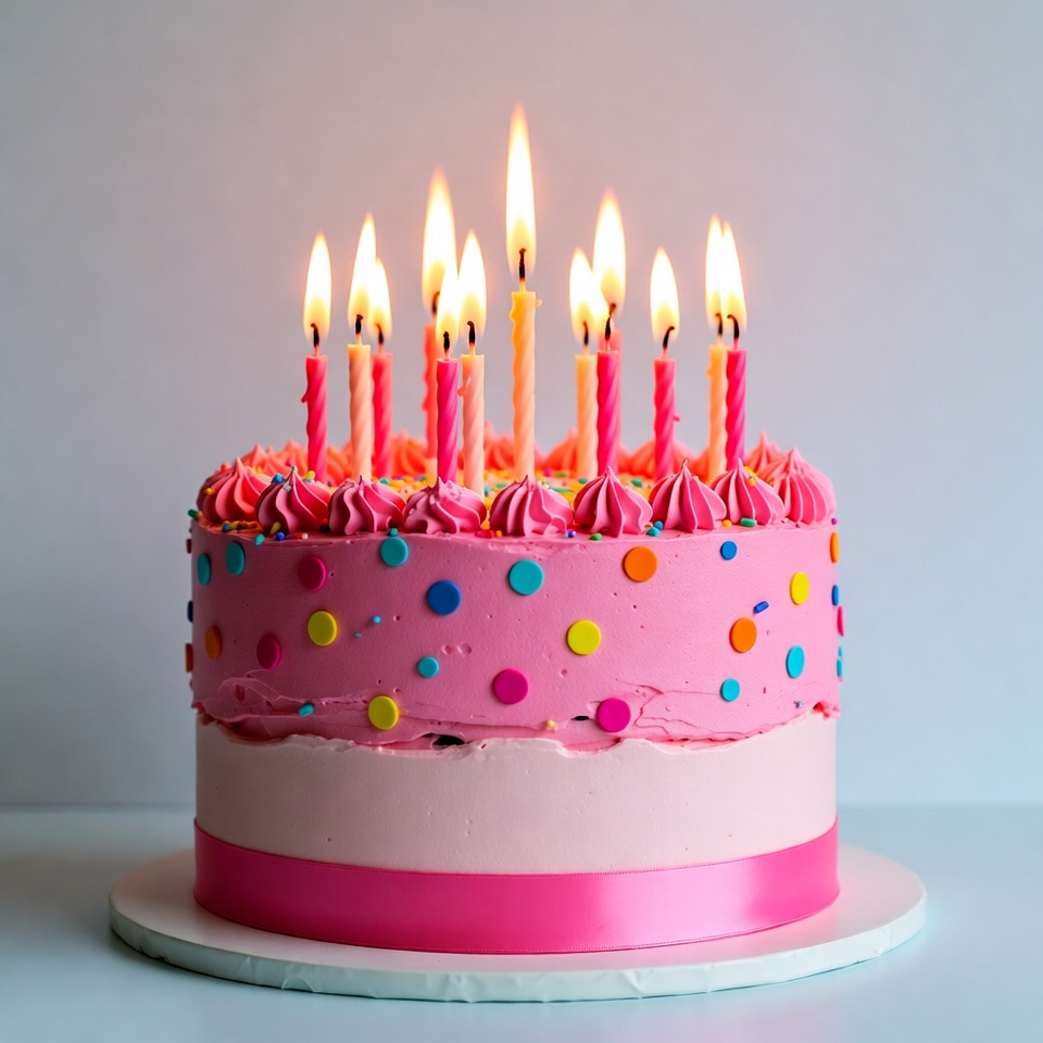 Pink Birthday Cake with Candles