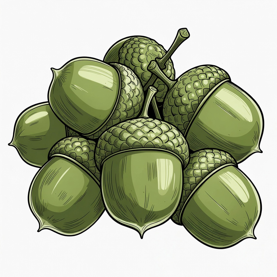 Cluster of Green Acorns Illustration