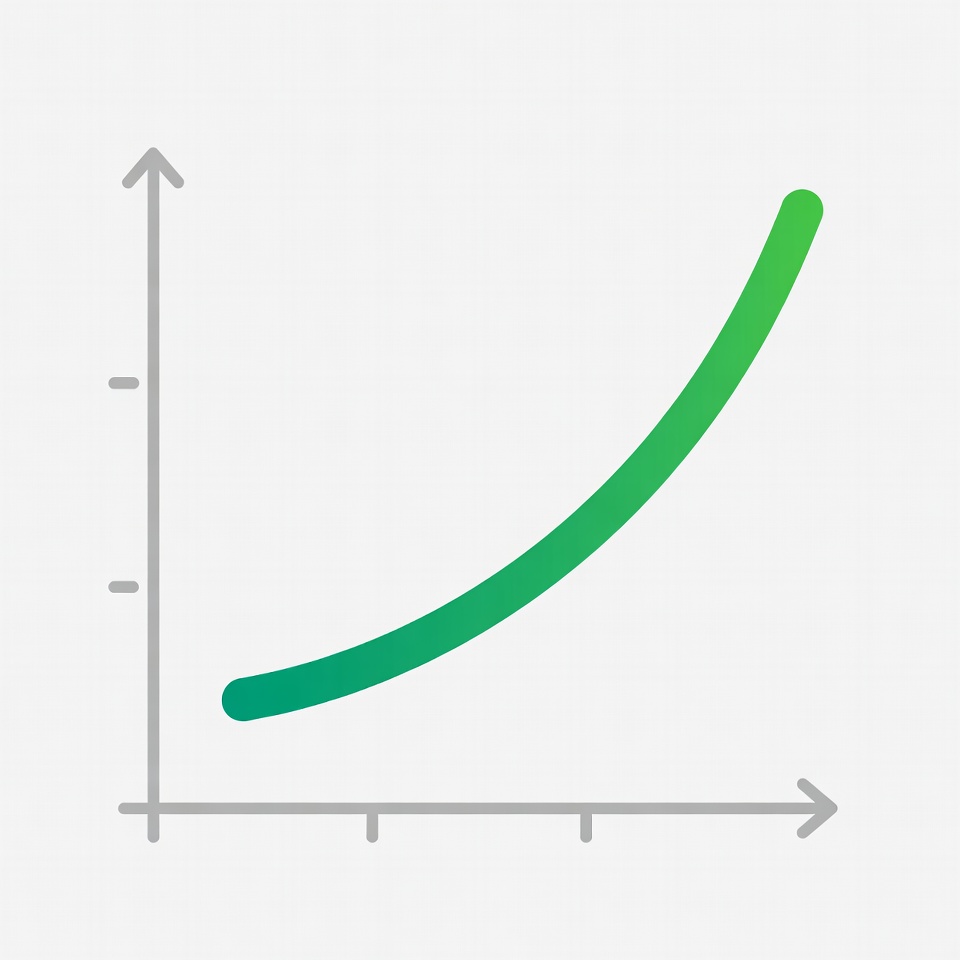 A simple line graph features a smooth green curve rising from the bottom left to the top right. The chart has gray axes with arrowheads and evenly spaced tick marks. The background is plain white.