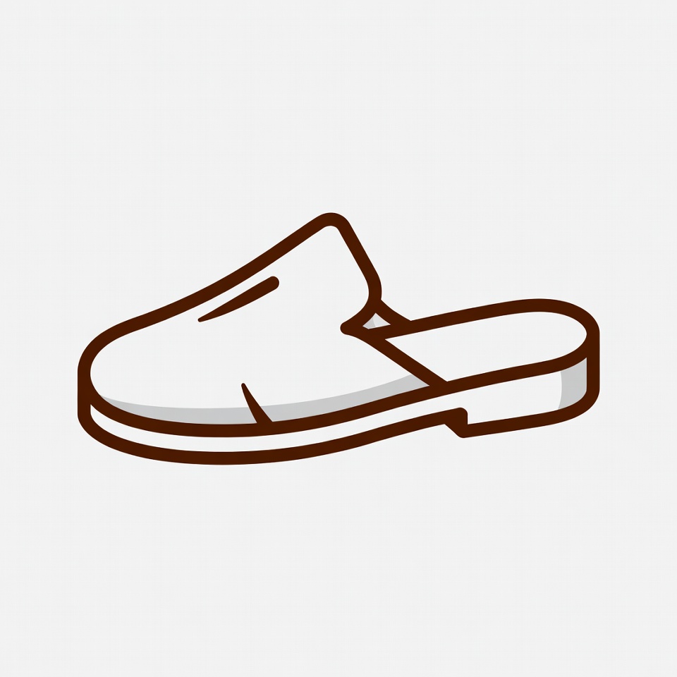 clipart, flat design, footwear, house slipper, icon, illustration, isolated background, line art, open back, outline, shoe, simple shoe, vector, white slipper, slipper