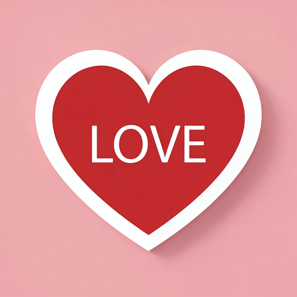 LOVE text, bold letters, clipart, graphic design, heart shape, illustration, isolated background, love symbol, paper cutout, pink background, red heart, romance, valentine, white outline, love heart