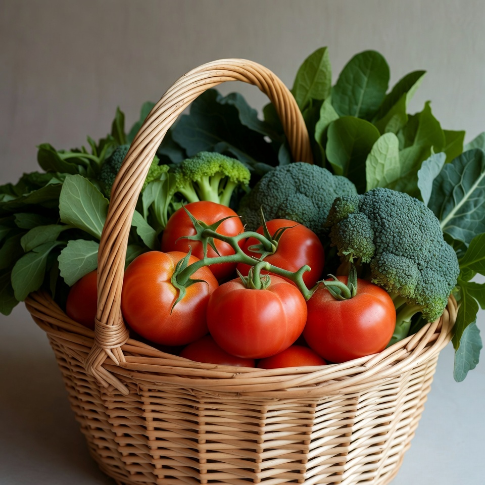 Basket of Tomatoes and Broccoli