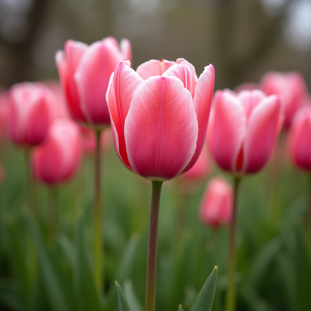Pink Tulips in Bloom Field
