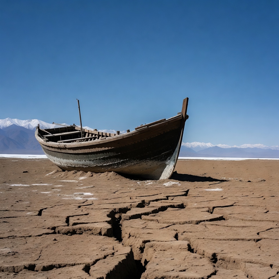 Abandoned Boat on Dry Cracked Lakebed
