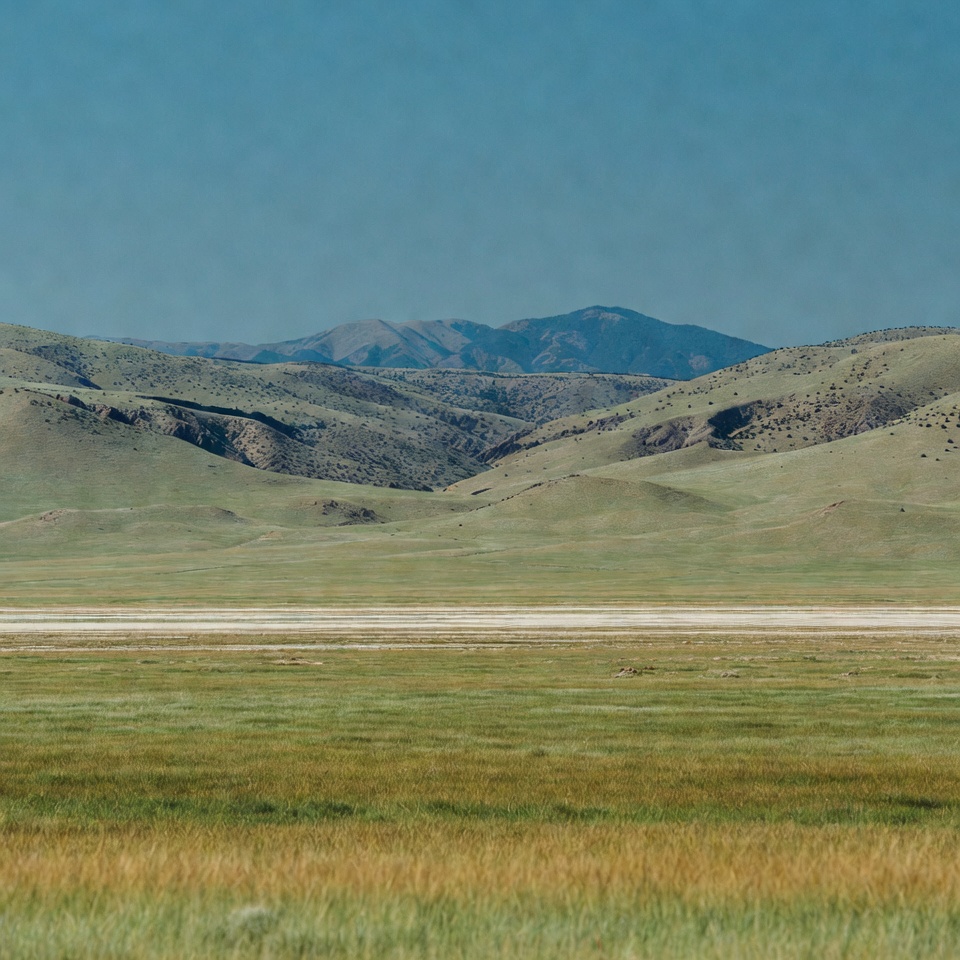 blue sky, distant mountains, earthy tones, grassland, grassy fields, green grass, hills, horizon, mountains, nature, outdoors, ridges, rolling hills, scenery, steppe, terrain, valleys, vast plains, wilderness, landscape