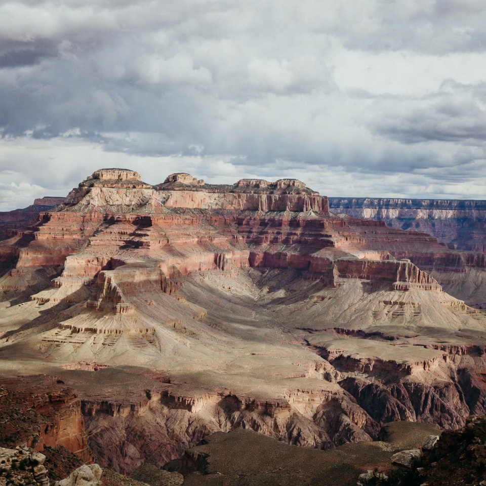 Arizona, canyon, cliffs, clouds, dramatic sky, earth tones, geology, hiking spot, landscape, layered formations, national park, nature, outdoor, red rocks, rocks, rugged terrain, scenic view, sky, travel destination, vast canyon, Grand Canyon