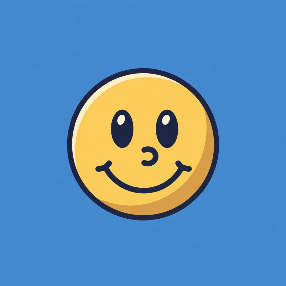 blue background, bold outlines, cartoon face, cheerful face, clipart, emoji, emoticon, happy face, illustration, isolated background, simple illustration, smiling emoticon, vector art, yellow face, smiley face