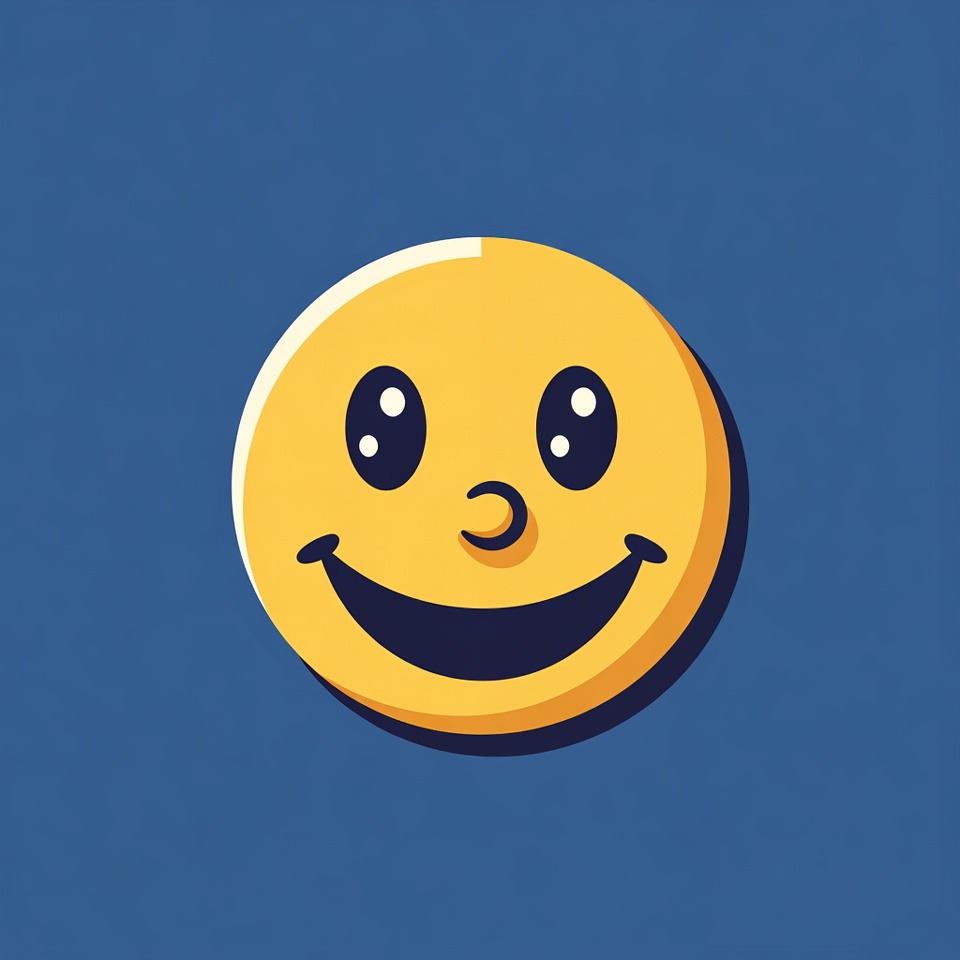 3D effect, big eyes, blue background, cartoon face, cheerful emoticon, clipart, fun icon, glossy, happy face, illustration, isolated background, smiling emoji, wide smile, yellow emoticon, smiley face