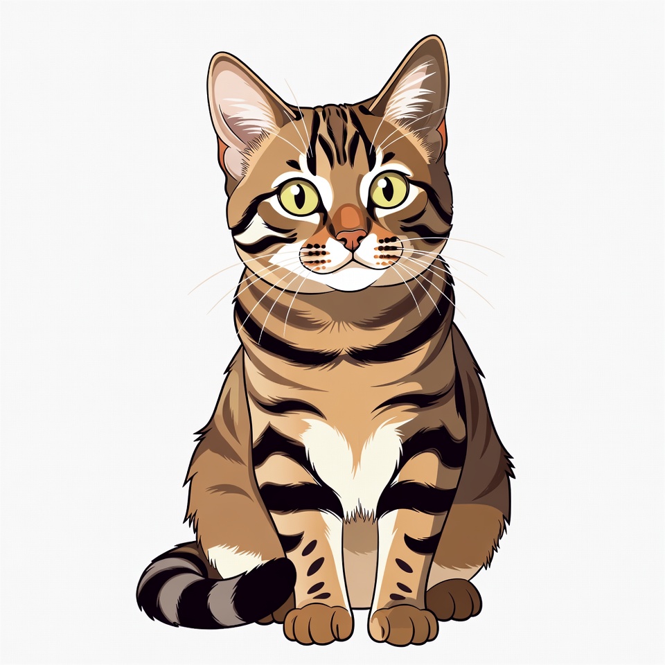 adorable cat, animal, brown cat, cartoon cat, cat, clipart, cute kitten, furry kitten, illustration, isolated background, pets, sitting cat, striped cat, tabby cat, tabby kitten, vector cat, yellow eyes, kitten