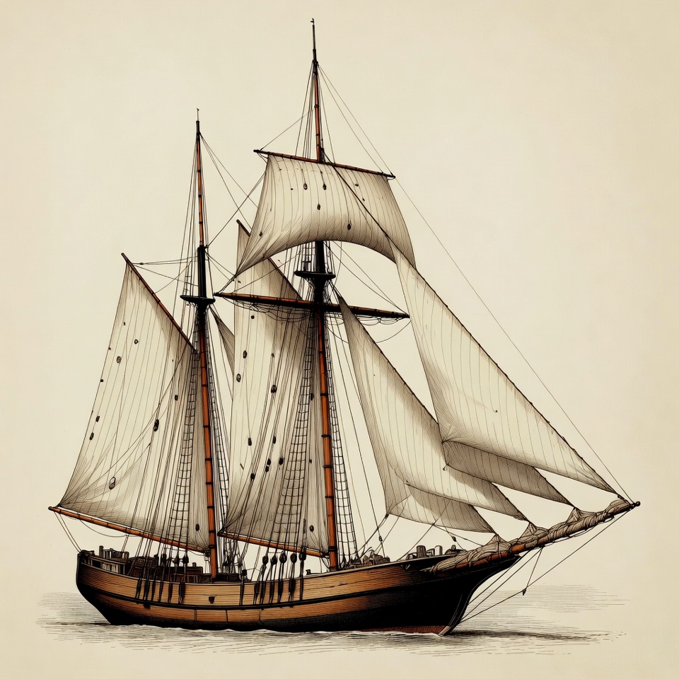 boat, brig, clipart, full sails, historical ship, illustration, isolated background, marine, masts, nautical, ocean, rigging, sails, schooner, sea, seafaring, ship, vessel, vintage illustration, wooden ship, sailing ship