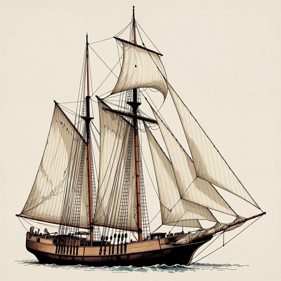 boat, clipart, crew, illustration, isolated background, marine, masts, nautical, ocean, pirateship, rigging, sailors, sails, sea, ship, tall ship, vessel, vintage ship, wind, wooden ship, sailing ship