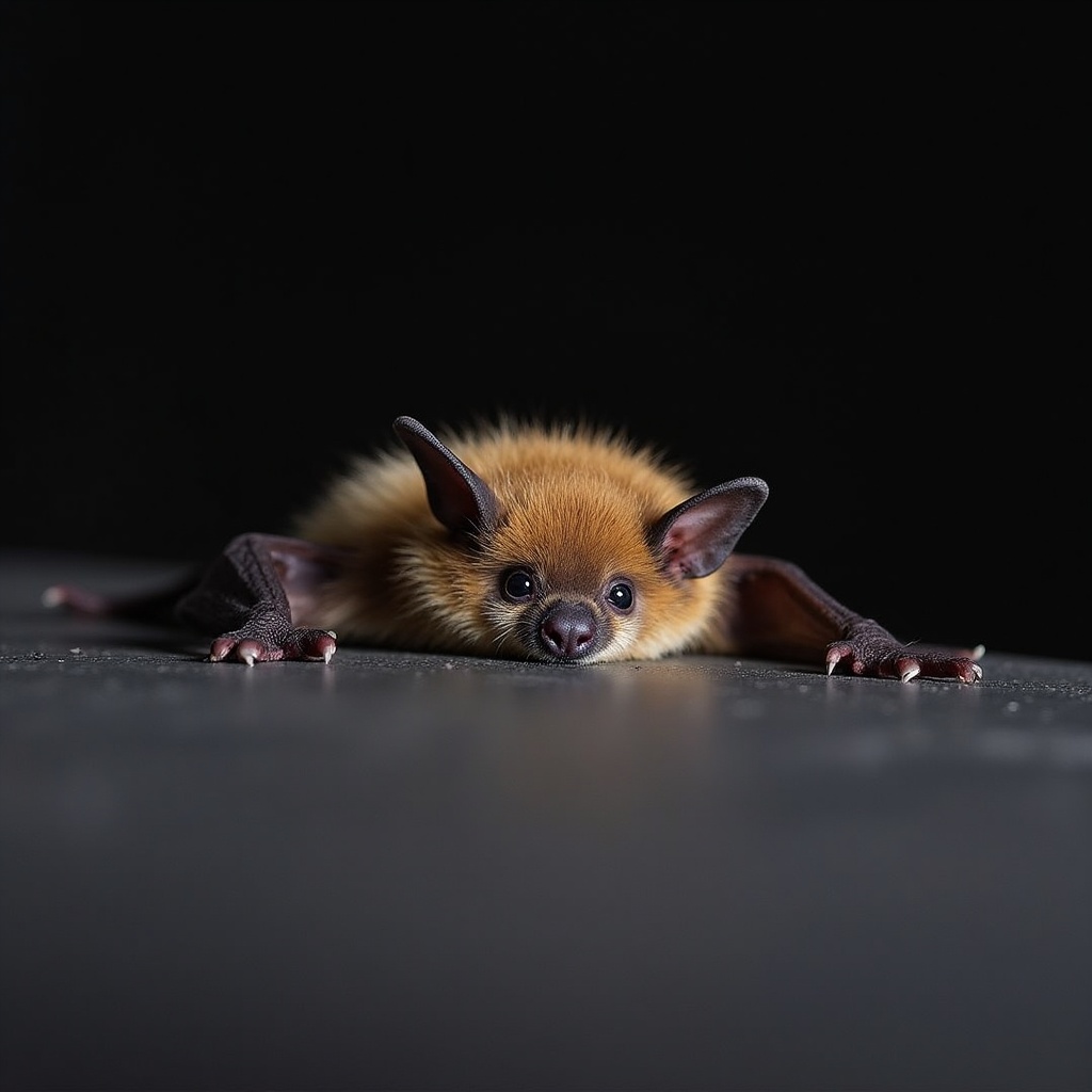 adorable bat, animal, bat, big eyes, black background, brown bat, claws, cute bat, fluffy bat, fruit bat, isolated background, large ears, mammal, reddish fur, wildlife, wings, young bat, baby bat