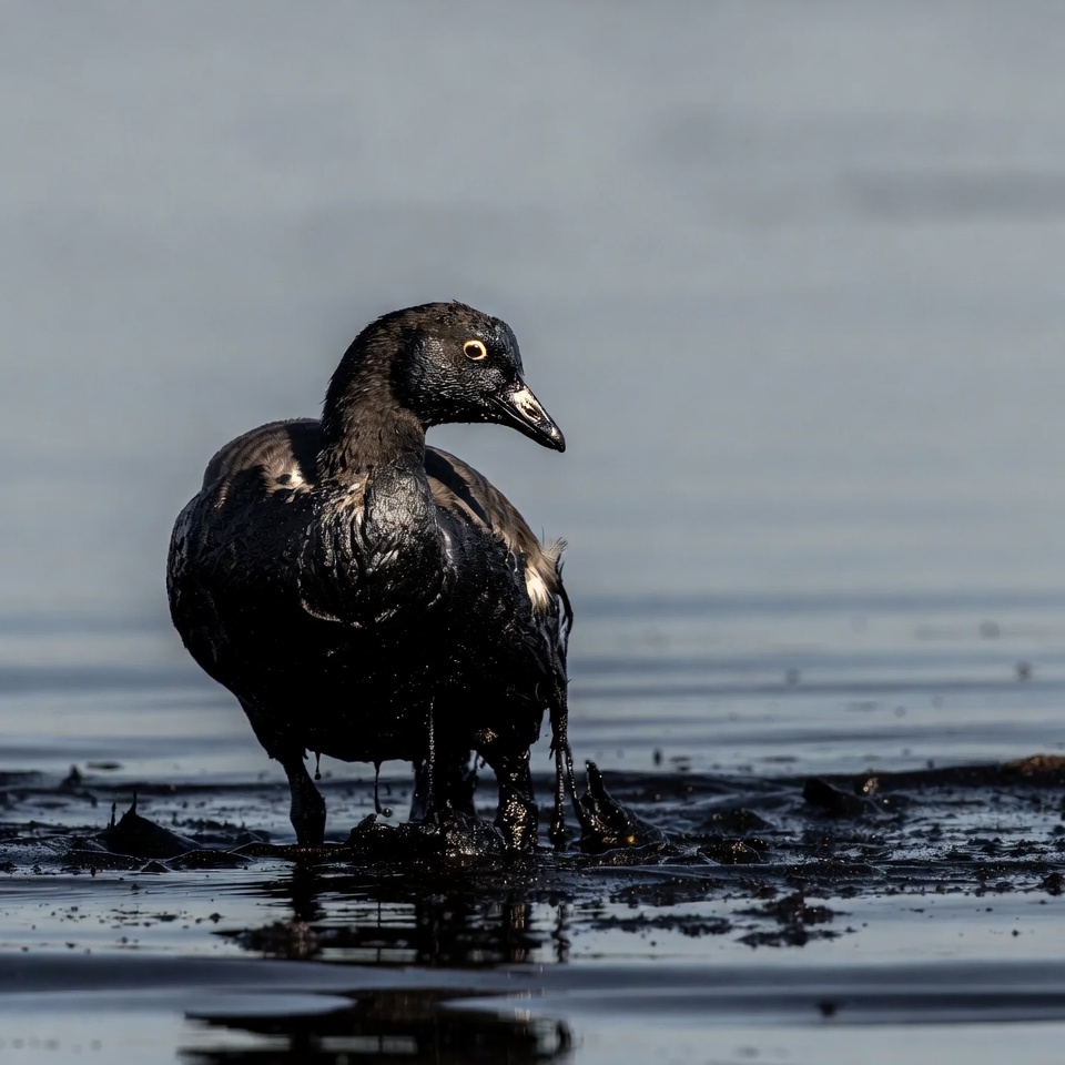 Black duck covered in oil