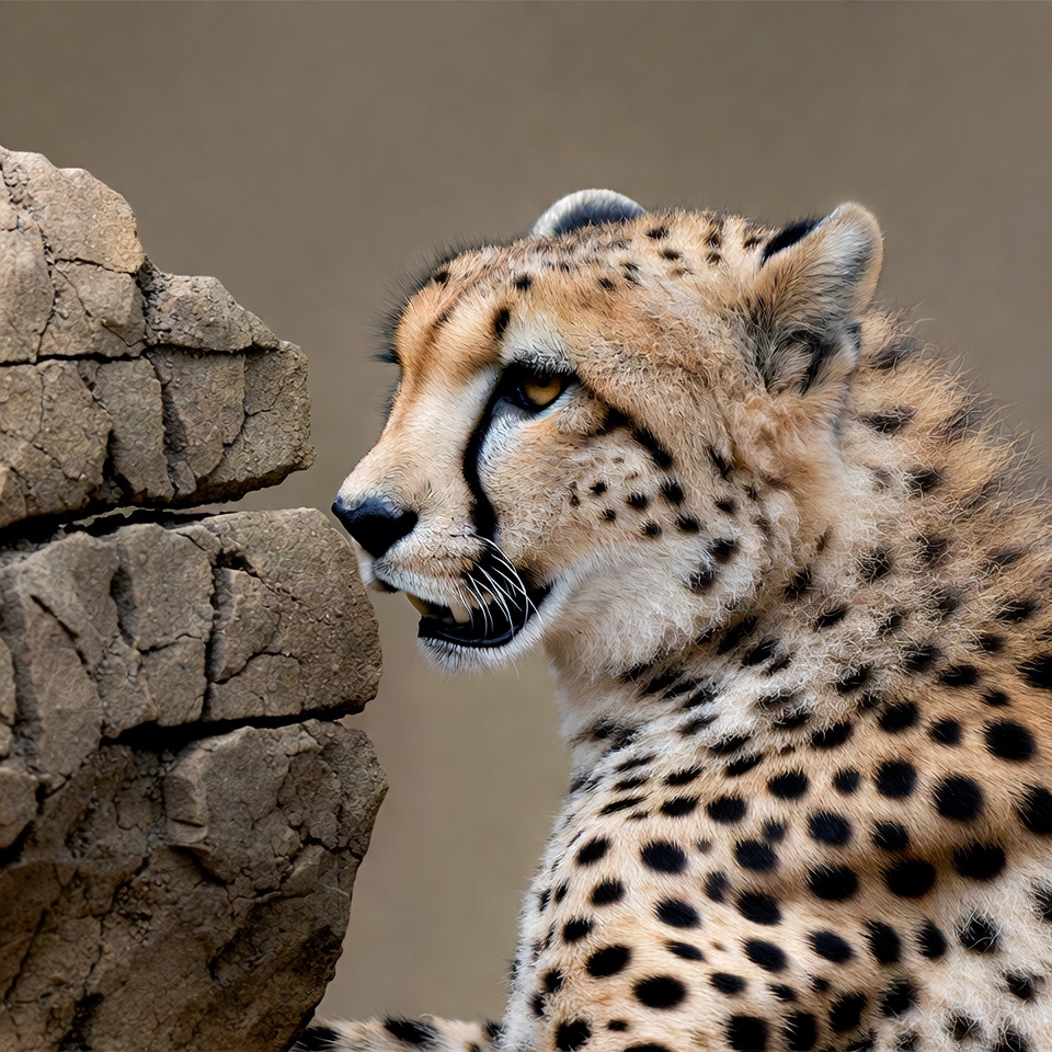 animal, beige background, big cat, fast animal, feline, growling, mouth open, nature, predator, roaring, rock, safari, sharp teeth, spots, spotted fur, stone, wildcat, wildlife, yellow eyes, cheetah