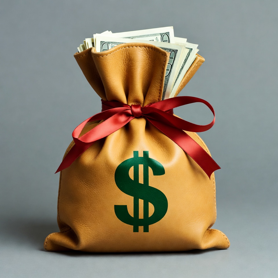 Money Bag with Red Ribbon