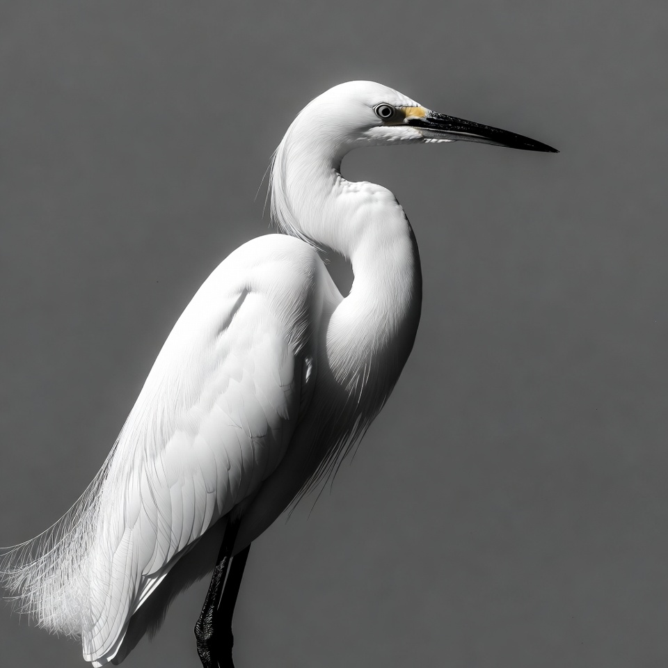 White Egret Standing on Gray Background
