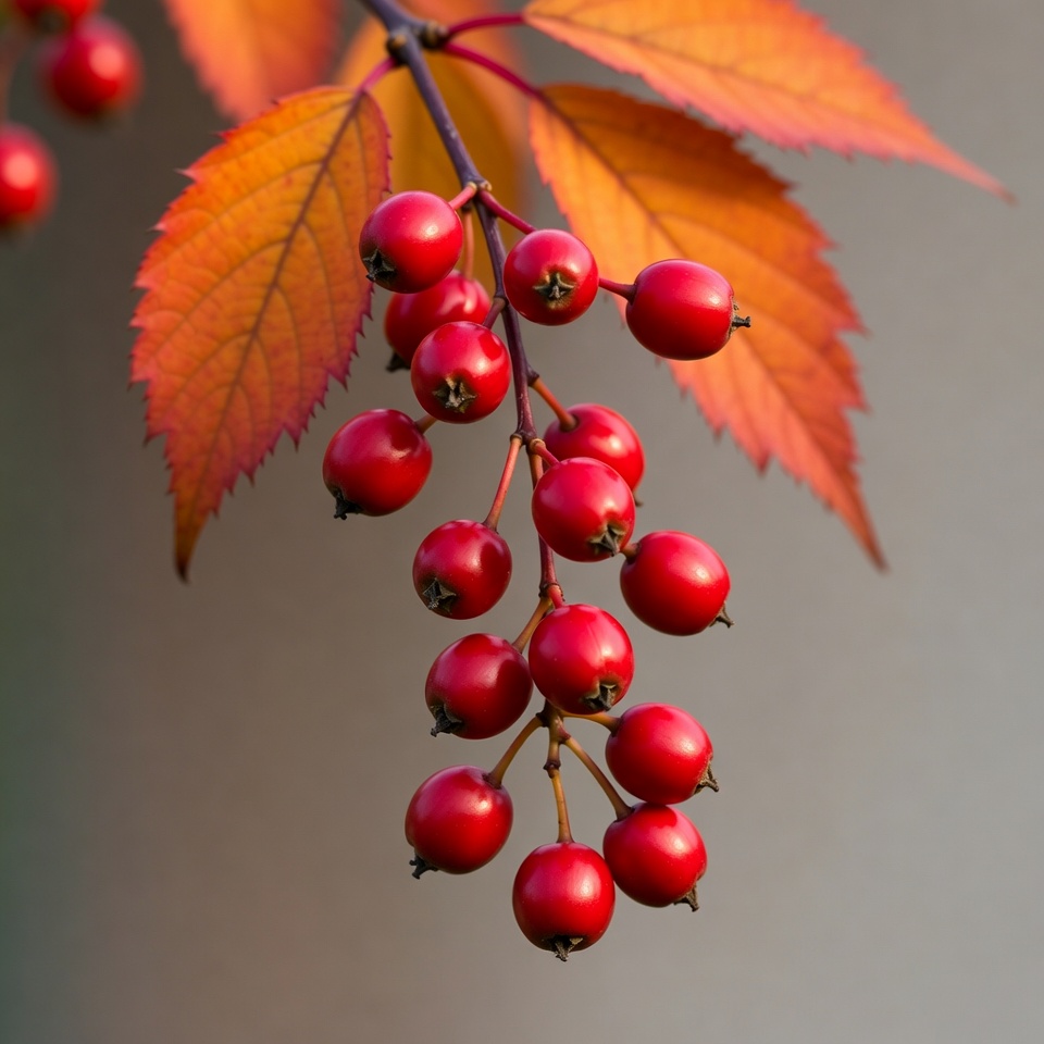 Red Berries on Autumn Maple Branch