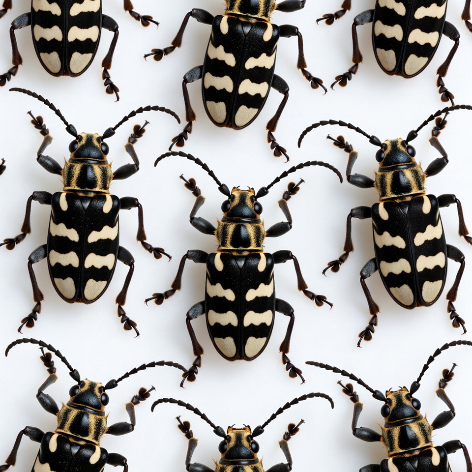 Striped Longhorn Beetles on White