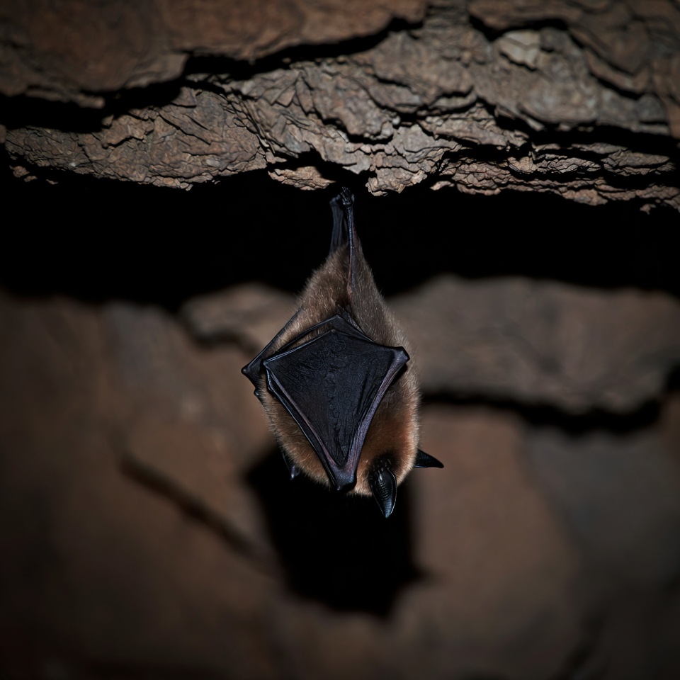 animal, brown bat, cave, dark cave, ears, furry bat, hanging bat, mammal, nocturnal, rock ceiling, rocky surface, roosting bat, upside down, wildlife, wings, bat