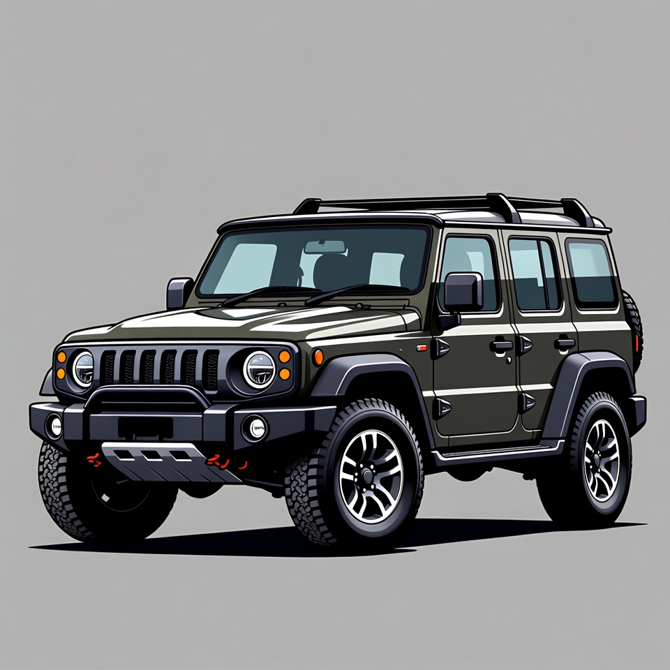Jeep front view, Jeep silhouette, automotive art, black grille, car illustration, four-door Jeep, front bumper, gray SUV, gray background, illustration, isolated background, off-road tires, off-road vehicle, red accents, roof rack, round headlights, rugged SUV, vector art, Jeep Wrangler