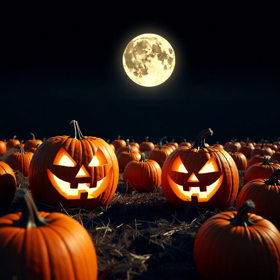 Jack-o'-lanterns under full moon