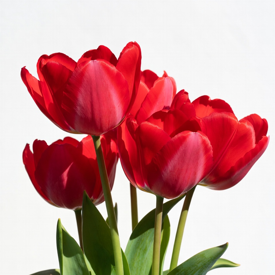 Red Tulips on White Background