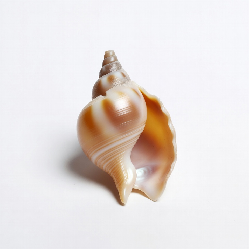beach shell, brown shell, conch shell, glossy shell, isolated shell, marine shell, nature, ocean, seashell closeup, shell, shell texture, spiral shell, striped shell, white background, seashell